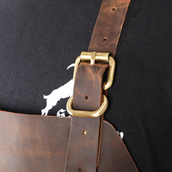 Die verstellbaren Träger und stabilen Schnallen sorgen dafür, dass die Weste genau da bleibt, wo sie hingehört – selbst wenn's am Rost heiß hergeht.