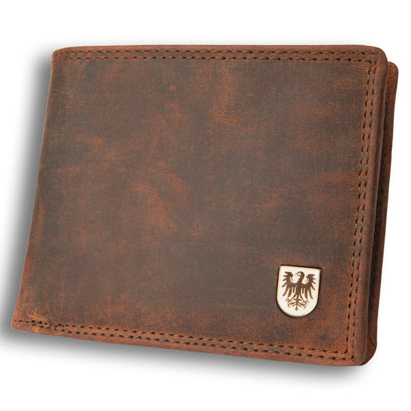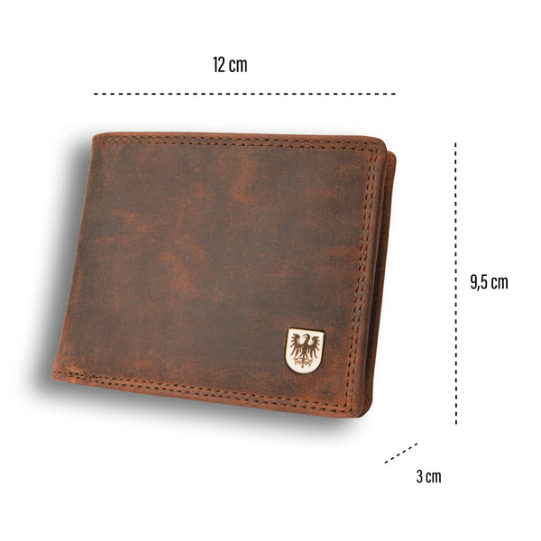 Die Classic Geldbörse Wappen Lugge steht für Stil, Stärke und Herkunft. Gefertigt aus echtem, hochwertigem Leder und verziert mit einem markanten Adler-Wappen auf der Vorderseite, vereint sie zeitloses Design mit praktischer Alltagstauglichkeit. Diese Börse ist nicht nur ein funktionales Accessoire, sondern ein Statement für alle, die Haltung zeigen – in der Tasche und im Leben.
