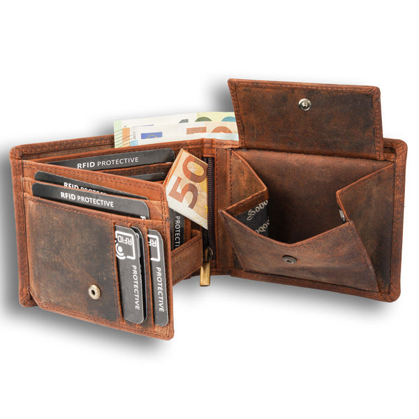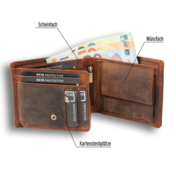 Die Adlerprägung auf dem Echtleder macht diese Börse zu einem stilvollen Hingucker mit Haltung.