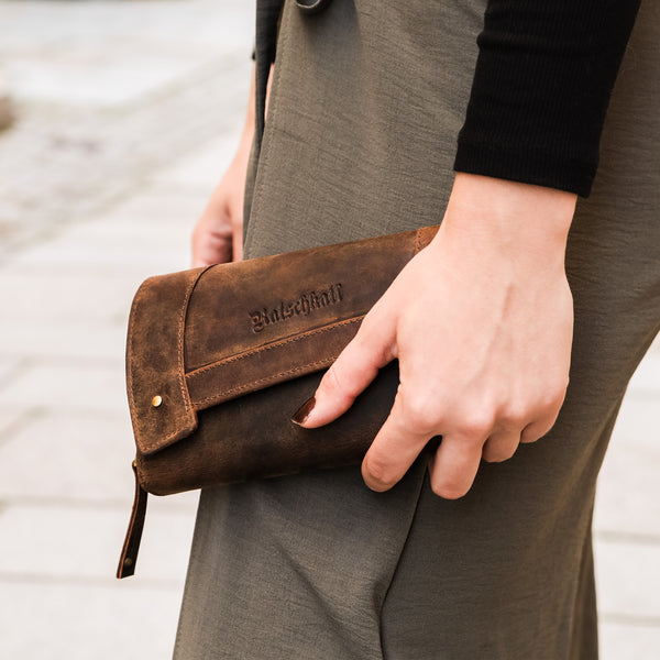 Mit feinem Leder & Ratschkatl-Details zeigst du Stil – auch beim Zahlen.