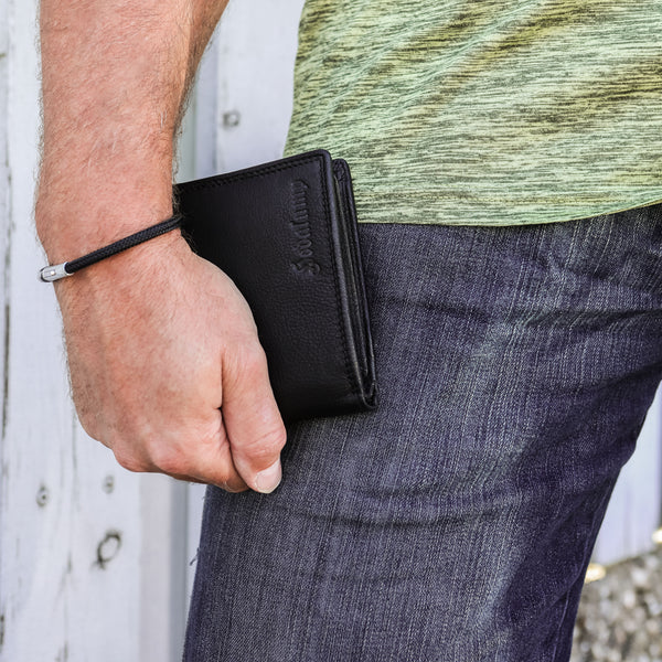 Die Classic Geldbörse Lugge in Schwarz ist für alle gemacht, die Wert auf klare Linien, hochwertige Materialien und langlebige Verarbeitung legen. Gefertigt aus echtem Black Cow Hunter Leder, überzeugt sie mit einer matten, leicht geölten Oberfläche, die mit der Zeit eine charaktervolle Patina entwickelt – ein Zeichen echter Qualität. Diese Geldbörse steht für Understatement mit Stil – ideal für Männer, die ihre Persönlichkeit nicht laut, aber bestimmt zeigen wollen.