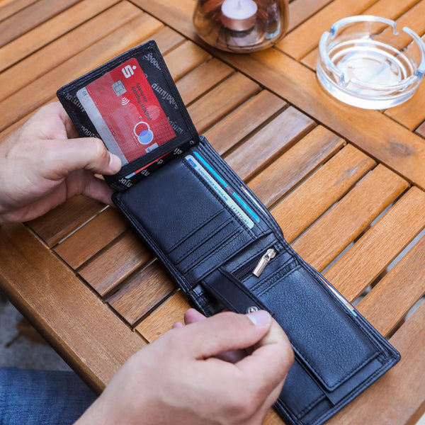 Trotz ihrer kompakten Form bietet die Börse Platz für alle Essentials und passt dabei bequem in jede Hosentasche.