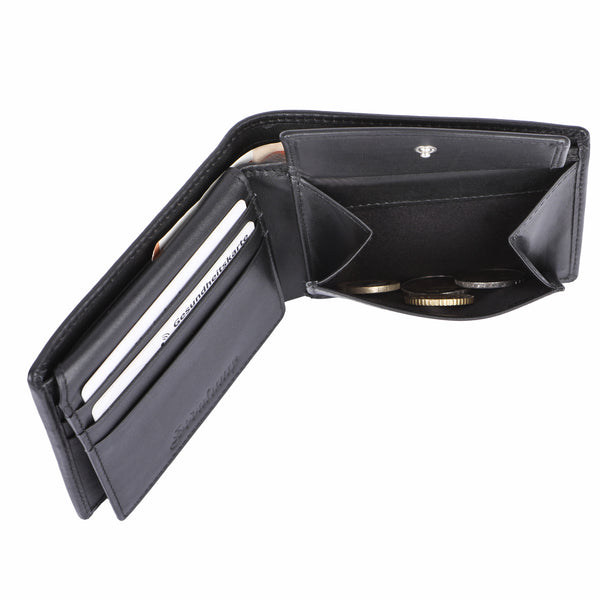 Mit mehreren Kartenfächern, einem großen Scheinfach und einem Münzfach bleibt alles sicher und ordentlich verstaut.
