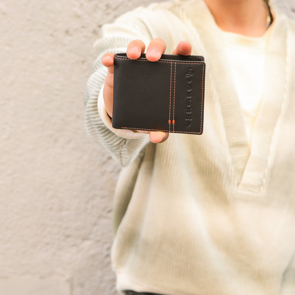 Mit der durchdachten Aufteilung bietet sie ausreichend Fächer für alle wichtigen Karten, ein großes Scheinfach und ein separates Münzfach. Das edle schwarze Leder sorgt nicht nur für ein luxuriöses Aussehen, sondern ist auch besonders strapazierfähig und entwickelt mit der Zeit eine einzigartige Patina, die die Hodalump Sim BLACK 2.0 zu einem ganz persönlichen Stück macht.