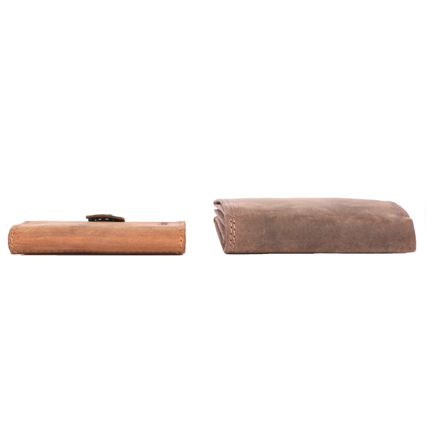 5. Veredelung und Patina: Durch eine spezielle Schleiftechnik wird die Oberfläche versiegelt, was nicht nur für einen schönen Glanz sorgt, sondern auch eine lebendige Patina entstehen lässt. Diese Patina entwickelt sich im Laufe der Zeit weiter und macht jeden Geldbeutel zu einem einzigartigen Unikat.