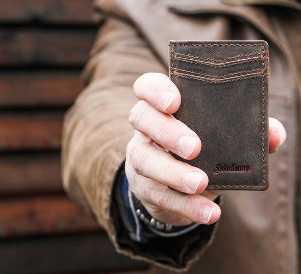 Das ist ganz einfach: Wir fertigen unsere Geldbeutel ausschließlich per Hand aus echtem vollnarbigen Büffelleder, welches als das robusteste Leder der Welt gilt. Zusätzlich versiegeln wir durch die besondere Schleiftechnik die Oberfläche der Geldbeutel. Während der Verwendung unserer Geldbeutel entsteht dadurch eine lebendige Patina die den individuellen Charakter dieses ausdrucksstarken Leders unterstreicht.