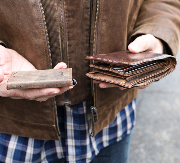 Das ist ganz einfach: Wir fertigen unsere Geldbeutel ausschließlich per Hand aus echtem vollnarbigen Büffelleder, welches als das robusteste Leder der Welt gilt. Zusätzlich versiegeln wir durch die besondere Schleiftechnik die Oberfläche der Geldbeutel. Während der Verwendung unserer Geldbeutel entsteht dadurch eine lebendige Patina die den individuellen Charakter dieses ausdrucksstarken Leders unterstreicht.