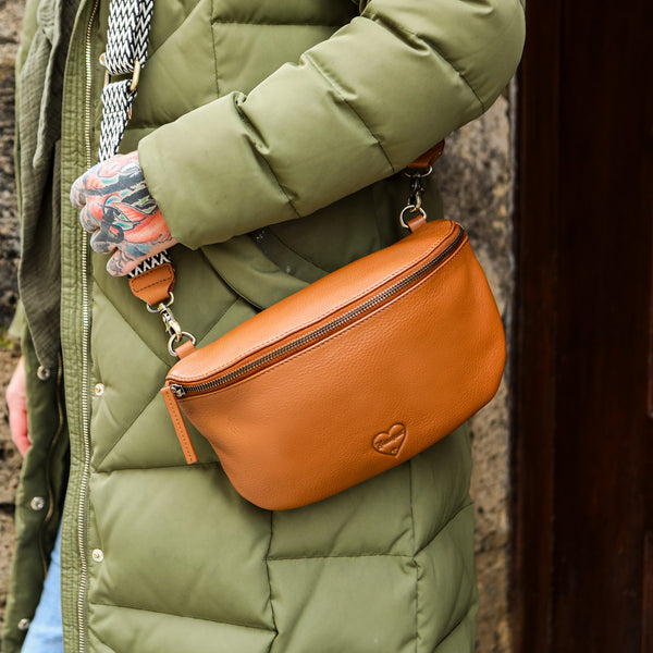 Dank des langen, verstellbaren Schulterriemens lässt sich die Tasche bequem als Crossbody oder über der Schulter tragen. Im Hauptfach ist genug Platz für gängige Smartphone-Größen, während ein zusätzliches Steckfach auf der Rückseite Platz für Karte, Ausweis oder etwas Bargeld bietet. So hast du alles Wichtige dabei – ohne eine große Tasche mitschleppen zu müssen.