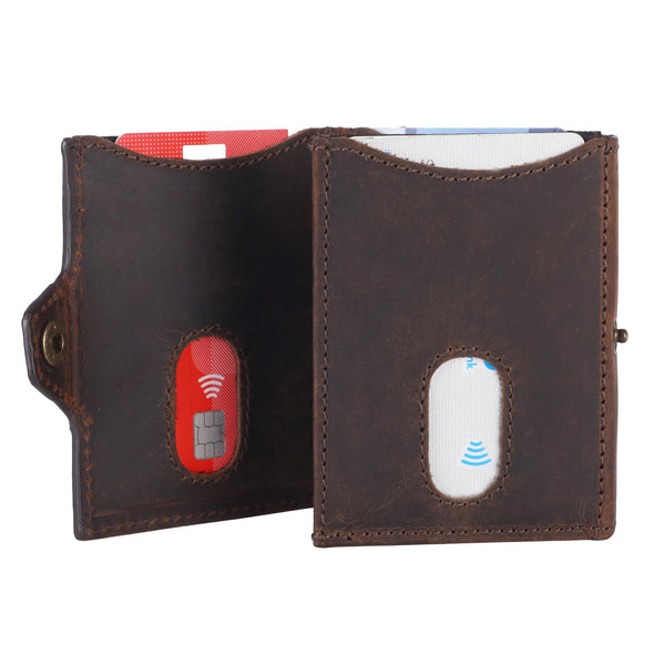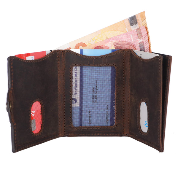 Habe mir das Kartenetui bestellt, weil es Ersatz für meinen alten Geldbeutel sein soll. Aber ich bin wirklich alles andere als zufrieden. Zum einen ist der Entriegelungsmechanismus komplett funktionslos, er hält nur die Karten fest im Gehäuse. Dagegen war es bei meinem alten Geldbeutel so, dass die Karten gefächert herausgeschoben wurden. Dazu ist das Leder in geschlossenem Zustand so steif, dass das Scheinfach seltsam vom Kartenfach absteht. Ich bin wirklich mehr als nur enttäuscht...