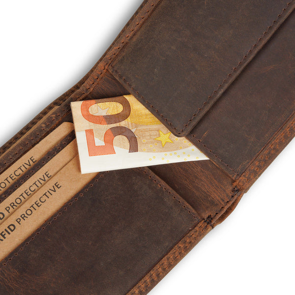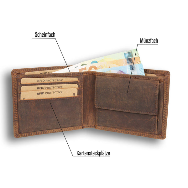 Im Inneren wartet ein cleveres Layout auf dich: Platz für Karten, Scheine und ein flaches Münzfach – alles übersichtlich und griffbereit. Das hochwertige Leder entwickelt mit der Zeit eine individuelle Patina und macht jedes Stück zum Unikat. Ideal für Minimalisten, Vielreisende oder alle, die unterwegs lieber leicht und funktional unterwegs sind.