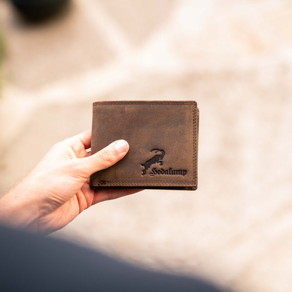 Das ist ganz einfach: Wir fertigen unsere Geldbeutel ausschließlich per Hand aus echtem vollnarbigen Büffelleder, welches als das robusteste Leder der Welt gilt. Zusätzlich versiegeln wir durch die besondere Schleiftechnik die Oberfläche der Geldbeutel. Während der Verwendung unserer Geldbeutel entsteht dadurch eine lebendige Patina die den individuellen Charakter dieses ausdrucksstarken Leders unterstreicht.