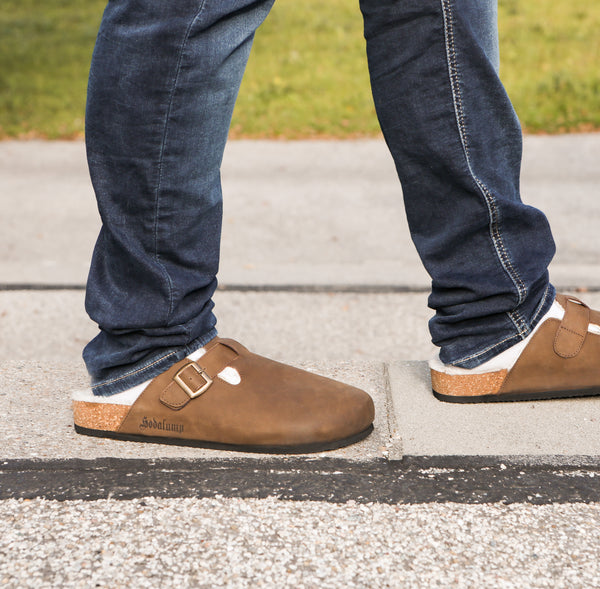 Die ergonomische Korksohle passt sich deinem Fuß an und bietet stabilen, aber leichten Halt. Das hochwertige Lederband sorgt für perfekten Sitz, ohne einzuschränken. Abgerundet wird der Look durch das bedruckte Hodalump-Logo, das den Schuhen eine unverwechselbare, urige Note verleiht.